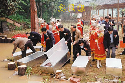■國家農業部副部長牛盾在張家界參加大鯢放流活動(前排左三)。