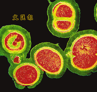 ■與抗生素對戰多年後變種的細菌,其中最常見的是「抗藥性金黃葡萄球菌」,簡稱MRSA。圖為顯微鏡下的MRSA。