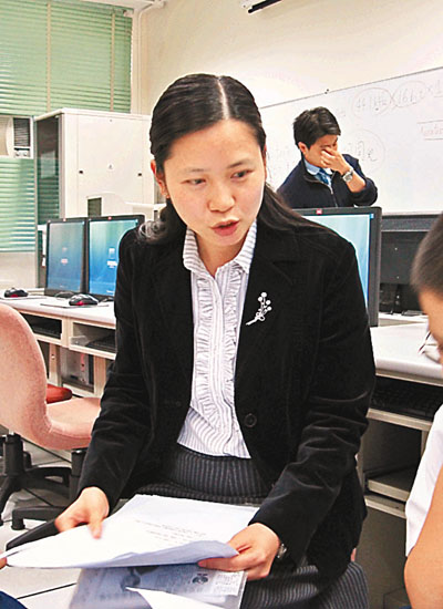 ■張祝珊英文中學老師陳柳芬為其學校隊伍溫習外交知識。