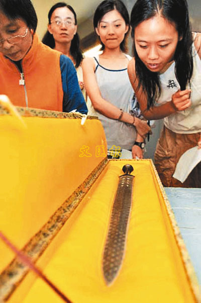 ■市民在湖北省博物館內近距離欣賞越王勾踐劍。