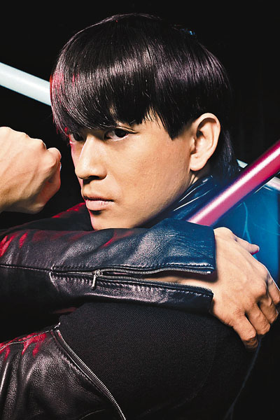 東東(見圖)在這次拍攝唱片封套的過程中,可說是跳足一整天,但都沒有腳軟,他說︰「我平時最鍾意跳跳紮,跳係我的強項,初時攝影師同我講,要我做一些凌空跳高的動作,我不但輕易做到,還可以凌空擺甫士。」但他戴上假髮,所以一度擔心出現凌空脫髮的情況。