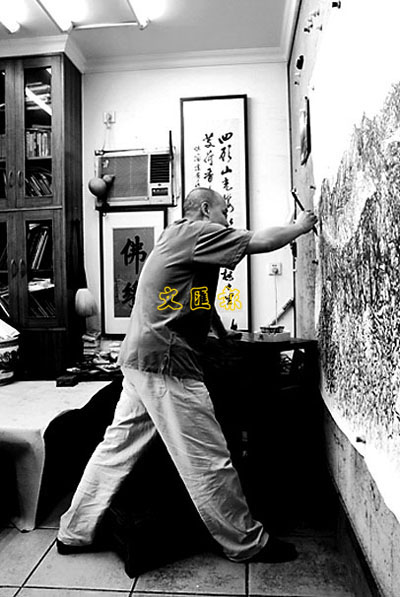■全國美展金獎畫家朱頌民正在作畫。 本報深圳傳真