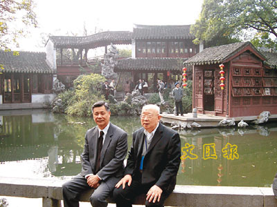 ■殷瑞鈺院士(左)和張壽榮院士一起遊覽蘇州園林。