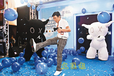 ■劉德華昨日舉行簽名會,和他的「仔仔」玩在一起。