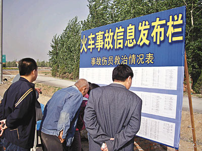 ■市民在查看膠濟鐵路事故死傷者名單。 本報實習記者蘇超 攝