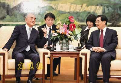 另據新華網29日電:國家主席胡錦濤29日上午在人民大會堂會見了應新華社邀請來華出席「東北亞名人會」的日本前首相中曾根康弘。