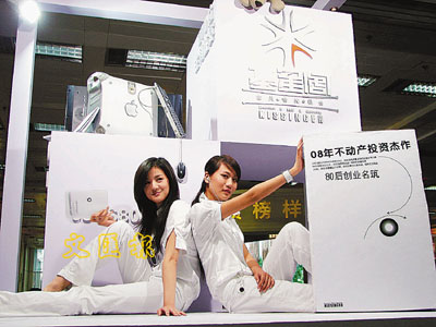 福州住交會上,以80後年輕人為主推客戶的房產商特別邀請年輕美麗的女模特兒站台,以增加對年輕人的吸引力。本報實習記者魯欣 攝