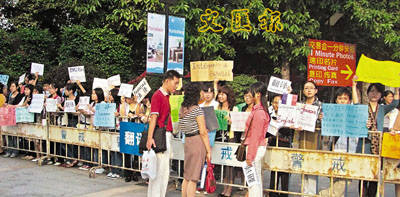 ■近年廣交會舉行期間, 大門外每天都擠滿舉著求職牌的大學生,等待外商聘用。 網上圖片