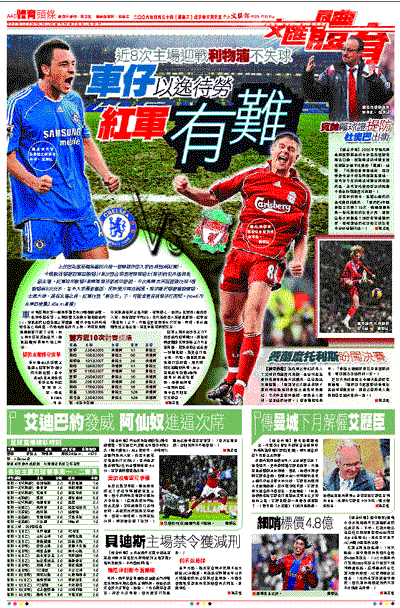 上仗因為懷斯擺烏龍而失掉一個關鍵作客入球的利物浦(紅軍),今晚歐洲聯賽冠軍盃(歐聯)4強次回合將要硬闖車路士(車仔)的史丹福橋地獄主場。紅軍近年歐聯4強兩遇車仔都成功晉級,今次是兩支英超宿敵在近4屆歐聯第8次交手,當中入球量都偏低,反映雙方踢法謹慎。車仔剛於聯賽戰勝曼聯,士氣大振,兼有主場之利,紅軍在要「侷住攻」下,可能會更有利車仔打突擊。(now670台周四凌晨2:45a.m.直播)