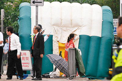 【本報訊】是次大車禍的死者眾多,其中14名女乘客當場證實死亡,當局繼5年前屯門公路車禍後,再次在意外現場用充氣帳篷搭起臨時停屍間(見圖)。消防處署理新界消防總長李洪森說,由於車禍涉及大量死傷者,現場醫生及救護人員需要將證實死亡的死者遺體另外處理,否則若將所有人一併送院,會進一步加重急症室的負擔。