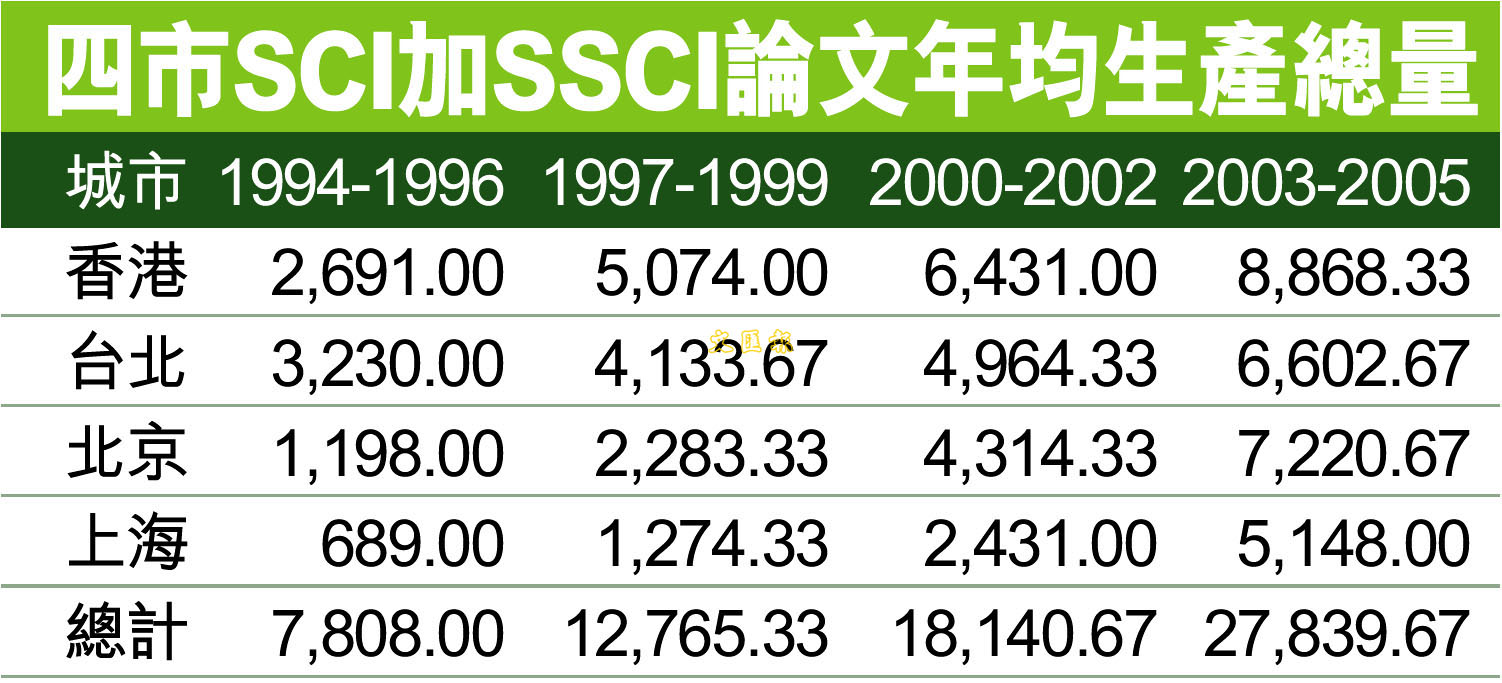 年產8868論文 港獨佔鰲頭 (圖)