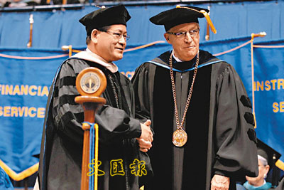 ■文森大學校長迪克.赫爾頓熱烈祝賀葉克勇獲榮譽博士學位,並稱讚他為「文大畢業生的楷模」。