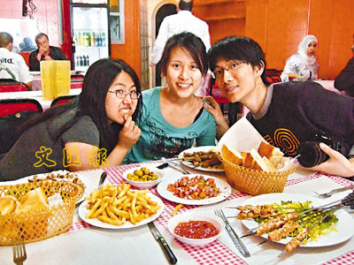 ■林朗行(中)和同學在卡薩布蘭卡的餐廳午膳。