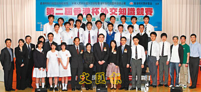 【本報訊】由外交部駐港特派員公署、教育局及香港明天更好基金共同主辦的「第二屆香港杯外交知識競賽」,經過日前3場緊張激烈的準決賽後,終於誕生五強隊伍。期間學生充分展示其對外交的深入認識,而今年新增的奧運知識部分,參賽者從容應對,小外交家的風範盡顯無遺,獲評判擊節讚賞。有驚險出線的學生代表賽後喜極而泣,興奮心情溢於言表。