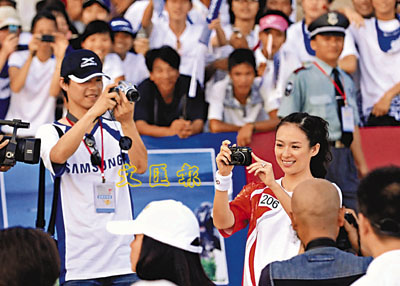 ■章子怡身為奧運特約記者,拍照當然少不了。 新華社