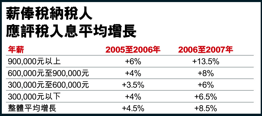 薪俸稅納稅人應評稅入息平均增長
