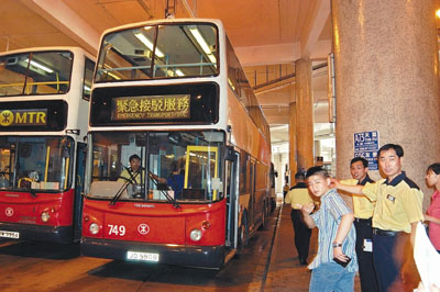 ■受輕鐵斷纜事件影響,部分乘客需轉乘接駁巴士離開。