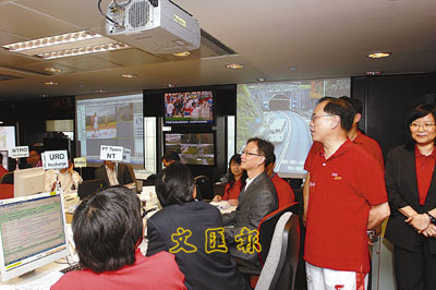 ■曾蔭權上周五(五月二日)為全城迎聖火奔波。圖為特首前往運輸署緊急事故交通協調中心,了解該署就京奧港區火炬接力負責的協調工作。
