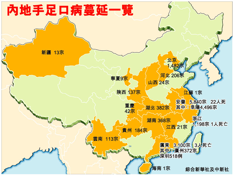 內地手足口病蔓延一覽 (圖)