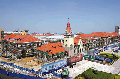 昨日,施工人員在青島新火車站內安裝太陽能模板和鋪設鐵軌。為迎接京奧帆船比賽而擴建的青島火車站工程進展順利,外部裝修工程5月前基本完工,內部裝修將於5月中旬結束。 中通社