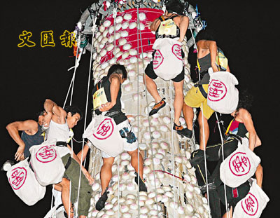 ■去年 5月24日,選手在長洲參加「搶包山」比賽。