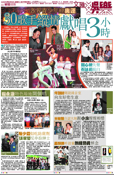 梳了個「火炬」頭的阿B,看來相當醒神,他笑笑口說「做不成火炬手都要做其他支持中國的事,特地整一個火炬頭,之前跟曾特首有機會合唱,對方唱得很好,高音部分都無走音,所以作為歌手更需加把勁唱好一些。(曾特首唱功係咪好過樂壇新人?)唔可以比較,不過佢唱歌好有power,唱了三首歌無放底過支咪,這些正面的歌,佢唱一句好過我們唱十句。」
