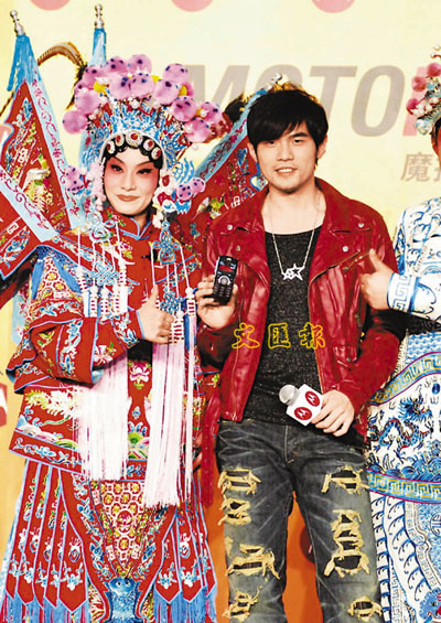 近日,以《千山萬水》入圍奧運MV的周杰倫,在北京一個代言活動中現場清唱《刀馬旦》,其實在《千山萬水》中,周董已經一展京腔。早前周董被拍到和新女友王思平逛性感內衣店,當日身穿皮褸的他,頸上所戴的雙星項鏈,就被傳為他們的定情信物。 ■中新社