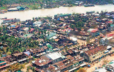 ■風災最嚴重的伊洛瓦底省,一個村落的屋頂幾乎全被吹爛。法新社