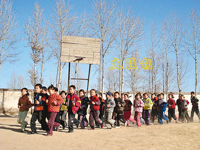■西部農村教育設施落後,通常一所學校能設有一個簡陋籃球架已經很難得。 本報甘肅傳真