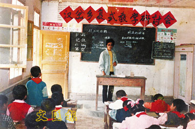 ■代課老師王建林是學校裡唯一一名教師,因此他上課時採用的是農村學校盛行的「複式教學」。