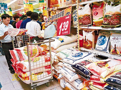 ■5月2日,廣州多家超市的國產大米價減價達兩成,當地市民紛紛搶購補倉。