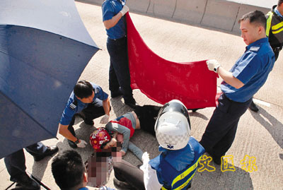 警員及救援人員接報到場,替女傷者脫去頭盔檢查,並以雨傘替她遮擋陽光,但她的頭部已告爆裂,臉部扭曲,流出大灘鮮血,證實無呼吸及脈搏,當場斃命。其後,警方使用1個帳篷蓋著女死者屍體。