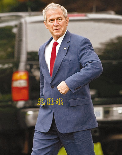 ■布什昨日離開白宮,準備搭直升機前往得州牧場。臨行前,這位準岳父掩飾不住興奮,擺出攜女步上紅地毯的架式。 法新社