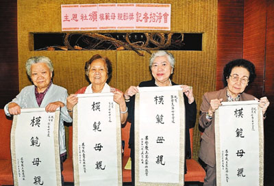 ■模範母親左起,吳順桐、何翠雲、黎梁美英及梁周保奩。 本報記者李志樑 攝