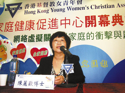 香港基督教女青年會總幹事陳麗歡稱,上網已成為港人習慣,是生活的一部分,上網時間直接影響與家人相處的時間。她稱,在網上建立人際關係的情況亦非常普遍,情況令人擔心,大部分網民相約素未謀面的網友出外見面,並視對方為朋友和知己,若不幸被欺騙感情或金錢,傷害往往會更深。