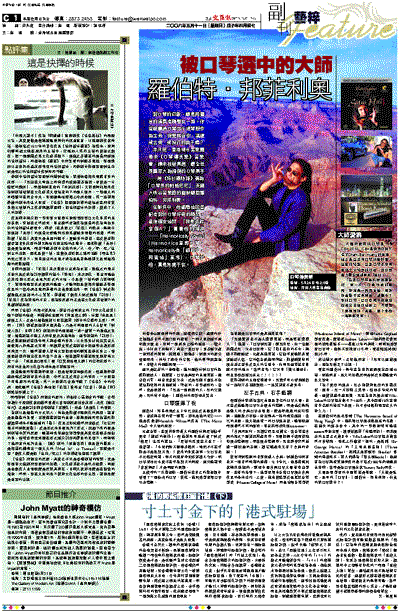 這只是記者的一段想像,誰叫羅伯特對口琴的描述那麼迷人。他還說,口琴是典型的美國樂器,連亞伯拉罕.林肯也喜愛吹奏。於是我腦子裡忍不住嚮往那濃郁的美國風情,神秘的,有些粗野的,當然,也是浪漫的。「我是一個浪漫的人,我的父親是,我的兒子也是。」羅伯特的回答帶著笑意。