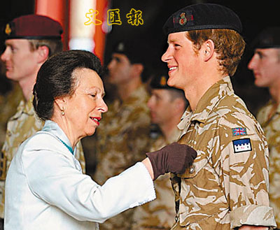 ■哈里王子接受安妮公主所頒的獎章。 網上圖片