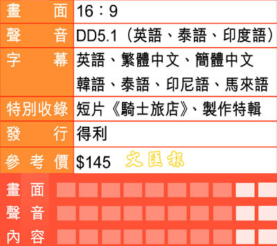 電影拍得很美,畫面色彩斑斕,很有印度風情,Darjeeling號上的所有圖案都由當地藝術家手繪而成,可見金牛座的執著與完美主義……音樂也配合得很好,不時出現的慢鏡頭、超現實的幾組特寫都讓人印象深刻。三區DVD的畫面音效都表現不錯,更贈送與電影情節有關的一部短電影《騎士旅店》與製作特輯。