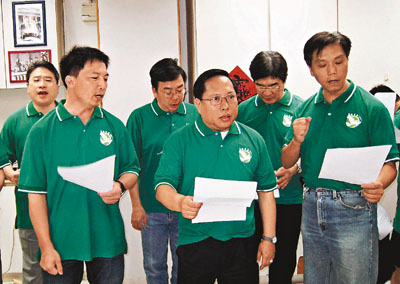 ■單仲偕(後右一)被點名批評在灌錄該黨立法會競選歌曲時走音。