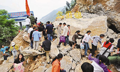 ■據悉,受災特別嚴重的北川縣老縣城80%、新縣城60%以上建築物垮塌,縣城周邊發生大面積山體滑坡。 圖為災民在撤離事發現場。 新華社