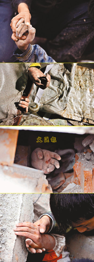 武警手扒廢墟 學童屍體交疊 (圖)