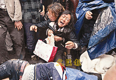 ■一名母親在自己孩子的屍體旁,放聲慟哭。 路透社