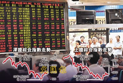 ■受四川汶川地震災害、央行再度上調存款準備金率等多重利空因素的影響,滬深股市低開低走雙雙下行,其中上證綜指跌破3600點,跌幅近2%。圖為股民在重慶一家證券營業部關注股市行情。 新華社