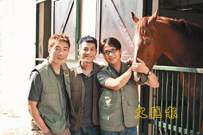 【本報訊】(記者 黃佩麗)梁漢文、許志安、吳國敬、洪卓立等昨日到上水一間騎術學校,拍攝《四葉草》系列的《盛裝舞步愛作戰》,梁漢文和吳國敬均客串馬伕一角,吳國敬笑言一知道做馬伕,還以為是「帶女出街」那些,笑言有問過要不要紋身,誰知原來是一場誤會。