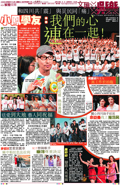 對於四川發生地震慘劇,徐小鳳神情肅穆地說:「他們在地震時,全港全世界在心裡同樣地震,希望廣大朋友一起來互相幫忙,這是我唯一的心願!」當問到小鳳姐有否捐錢時,她叫大家先讓她把歌錄好。