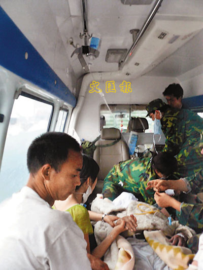 18時27分許,在現場數百消防隊員、解放軍戰士和群眾的注視下,劉德雲被抬出了廢墟,早已等候多時的成都軍區達州軍分區陸軍醫院救護車將他送往附近醫院救治,現場響起一片掌聲。