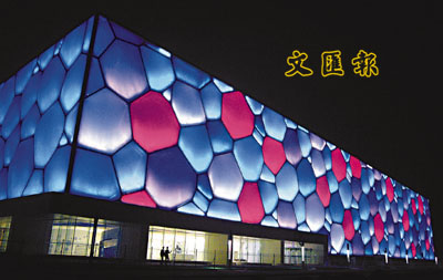 ■「水立方」於晚上著燈後份外迷人。 資料圖片