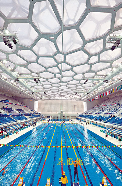 「水立方」除具備多樣化用途及達到環保功效外,場地設計人員為確保「水立方」的水質達到國際泳聯最新衛生標準,泳池的水將採用砂濾-臭氧-活性炭淨水工藝,全部用臭氧消毒。這種消毒方式不僅能有效去除池水異味,還能消除池水對人體的刺激。據「水立方」一位負責人表示,「水立方的水可以喝!」
