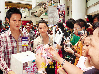 【本報訊】《法證先鋒II「全民見證首映會」》昨日於奧海城舉行,劇中演員歐陽震華(Bobby)、鄭嘉穎、林文龍、蒙嘉慧(YoYo)、佘詩曼、鍾嘉欣等齊齊出席首映會,之後一班藝人更即場為「眾志成城抗震救災」募捐,反應熱烈。他們離開活動場地,更走到酒樓向茶客勸捐,眾人紛紛慷慨解囊,有的甚至捐五百、一千,又拉著演員合照,其中以Bobby和阿佘最受歡迎。