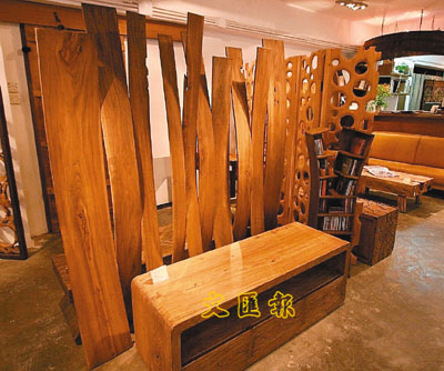 如此歷史悠久的屏風,無論尺寸與風格都不是每個家庭都適合。Wood Shop就利用古舊實木,隨其形態設計出不拘一格的屏風,達到新舊交融。以空心的實木圈堆疊成屏風,用來間隔空間,絕對不會造成壓逼的感覺。在創新的設計裡,卻保留著實木的自然紋理,在玩味的設計中,隱隱散發傳統氣息。